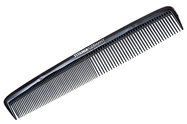 Расчёска комбинированная 17,5 см чёрная с редкими и частыми зубчиками. Используется для мужских и женских стрижек.