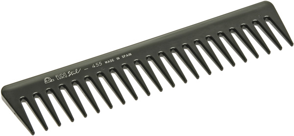 Расчёска-гребень из пластмасы чёрного цвета с редкими зубцами.
