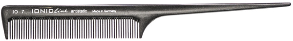 Расчёска IONIC с хвостиком и средней ширины зубьями для разделения волос. Для изготовления серии расчёсок Hercules IONIC используется специальный ионизированный термопластик, обеспечивающий уход за волосами в процессе расчёсывания. Материал отличает высокая прочность, гибкость и теплохимическая устойчивость.