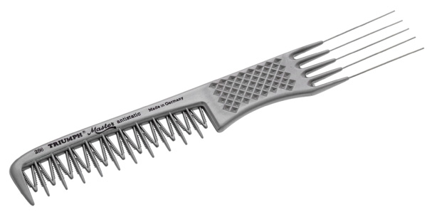 Расчёска антистатичная с металлической "вилкой" используется для формирования начёса.