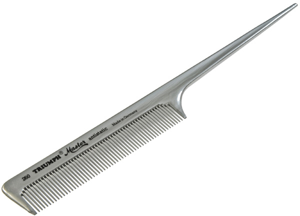 Расчёска антистатичная с пластиковым хвостиком и частыми зубчиками.