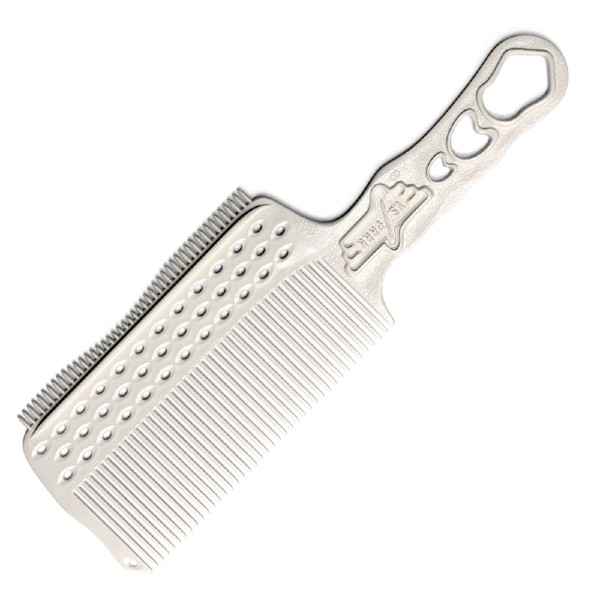 Расчёска предназначена для работы именно короткими волосами и идеально подходит для создания стрижки в стиле "Fade". Специальные короткие зубцы на обратной стороне обушка имеют шестиугольную форму и выполнены со специальным изгибом. Это позволяет легко вычёсывать мелкие волоски, прилипшие к коже во время стрижки.