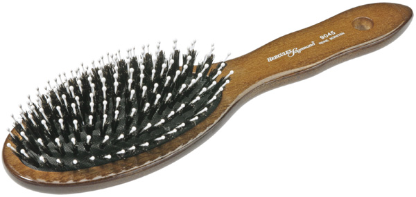Щетка деревянная овальная на пневматической подушке с натуральной щетиной и штырьками из нейлона обладает массажным и антистатическим действием, предназначена для длинных и средних волос.