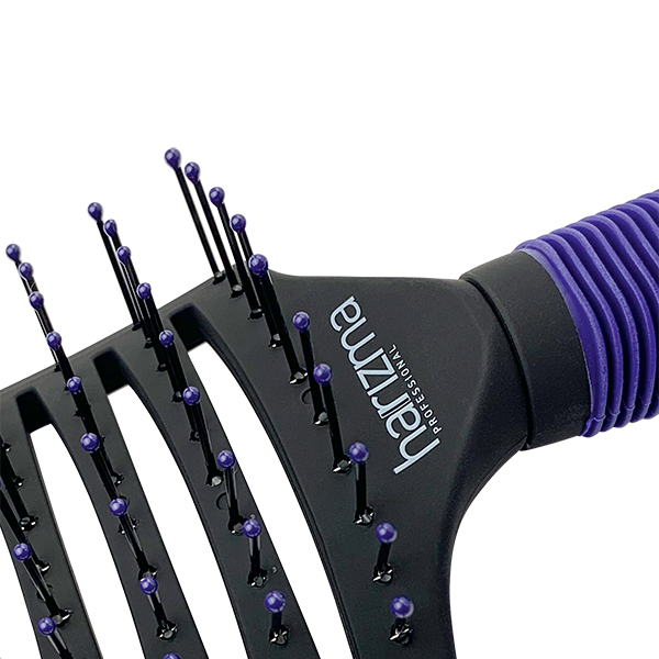 Щетка очень гибкая, поэтому давление на кожу головы во время расчесывания распределяется равномерно. Вогнутая форма щетки повторяет форму головы, что обеспечивает комфортные ощущения во время расчесывания волос любой длины.