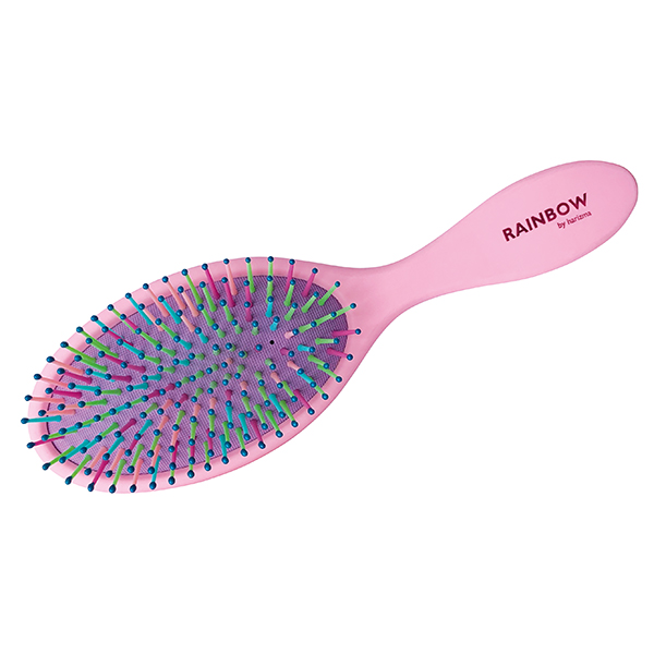Высококачественная щётка из серии Rainbow от harizma. Аккуратные пластиковые штифты с шариковыми наконечниками обеспечивают комфортное расчёсывание волос любого типа и длины. Эластичная резиновая "подушка" с добавлением натурального каучука мягко прогибается, повторяя форму головы. Щётка легко моется и очищается.