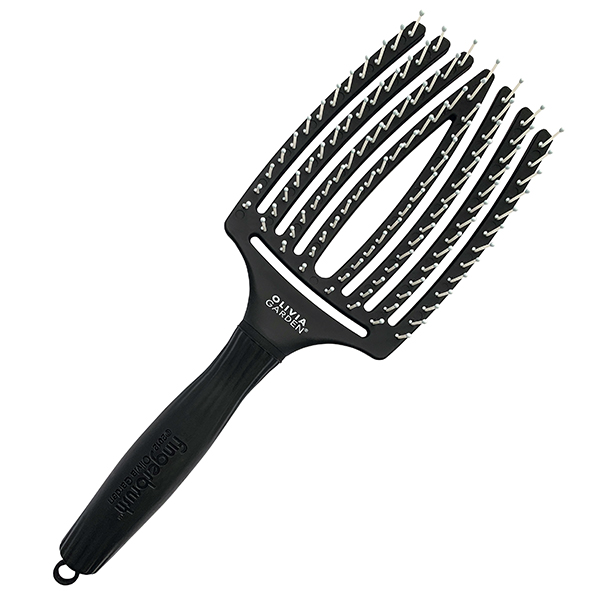 Щетка Fingerbrush изогнутой формы со штифтами из термостойкого нейлона обеспечивает бережный массаж волос и кожи головы. Щётка оснащена удобной прорезиненной ручкой, а сквозные отверстия в корпусе щётки хорошо продуваются горячим воздухом фена и обеспечивают быстрое высыхание волос.