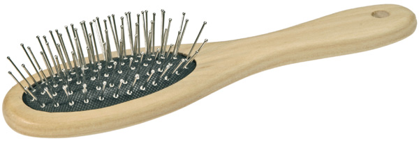 Щётка деревянная малая овальная. Алюминиевые зубчики с шариками не травмируют кожу головы. Для длинных и средних волос.