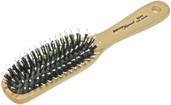 Щётка деревянная прямоугольная 7 рядов на пневматической подушке с натуральной щетиной и нейлоновыми зубчиками, обладает массажным и антистатическим действием, предназначена для длинных волос.