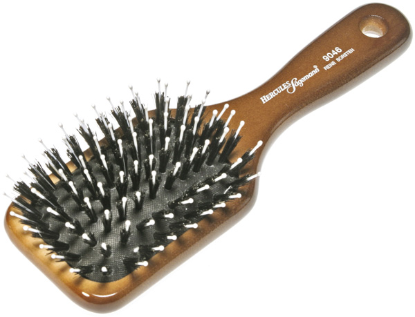 Щётка деревянная прямоугольная на пневматической подушке с натуральной щетиной и нейлоновыми зубчиками, обладает массажным и антистатическим действием, предназначена для длинных волос.