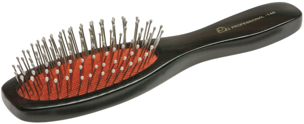 Щётка массажная на деревянном основании. Зубцы металлические с пластиковами наконечниками.