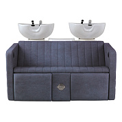 Широкая, комфортная, двойная парикмахерская мойка. Каркас, сиденье и с...
